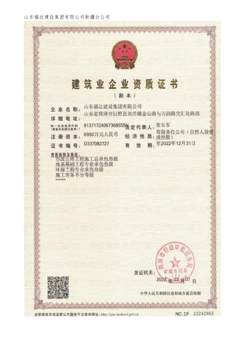 Shandong Fuda Construction Group Co., Ltd. Xinjiang Branch