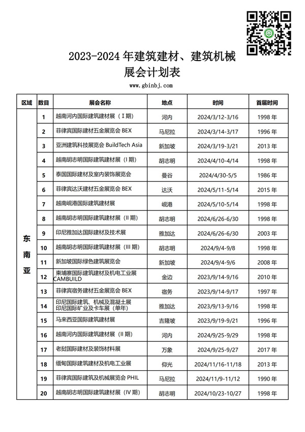 2023-2024年建筑建材、建筑機械展會計劃表 相關(guān)推薦