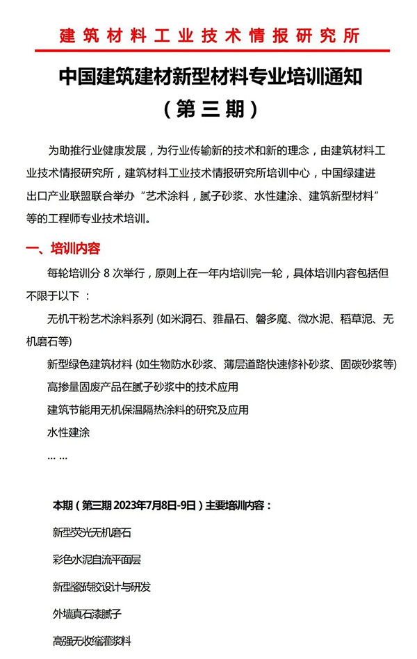 綠建國際報道:中國建筑建材新型材料專業(yè)培訓通知
